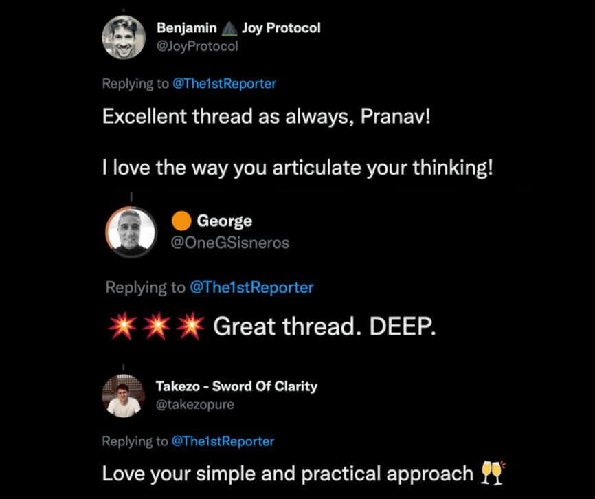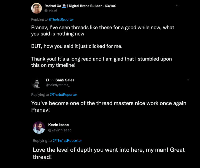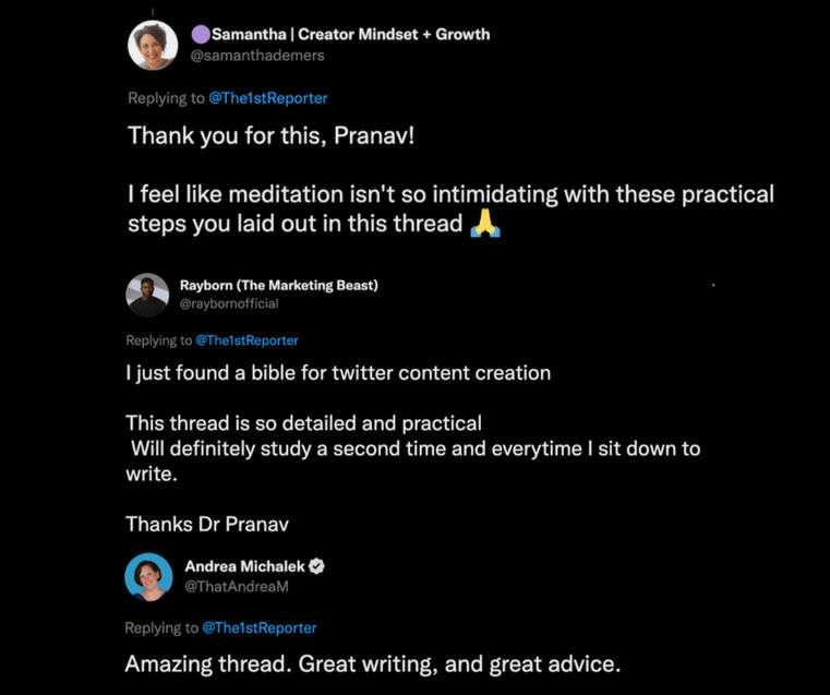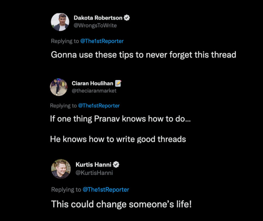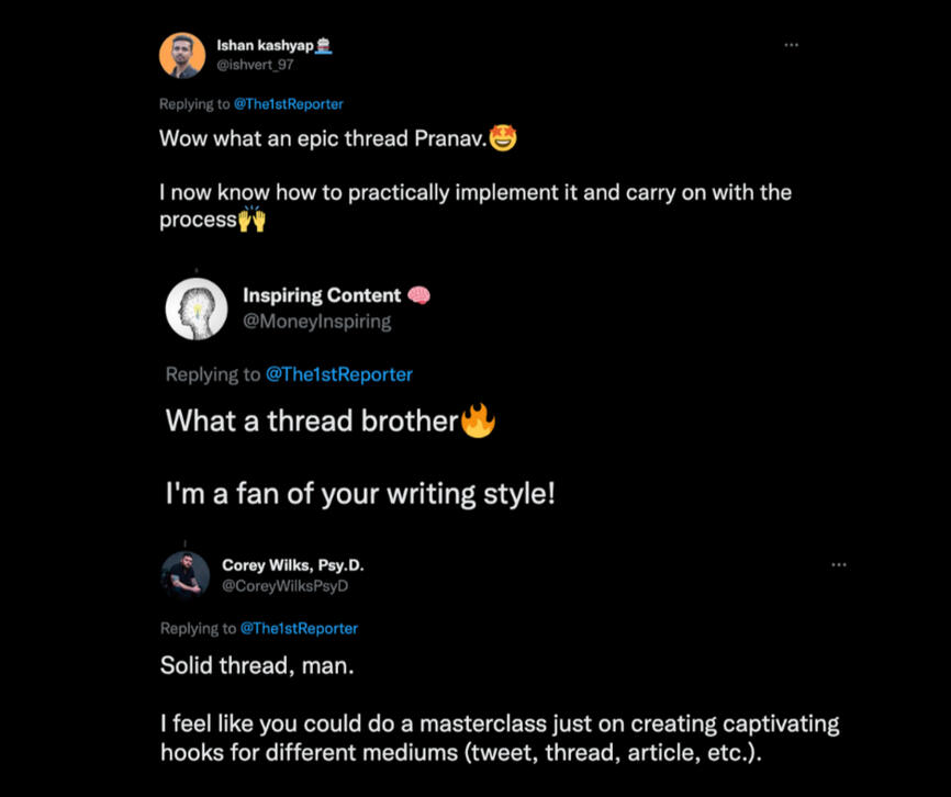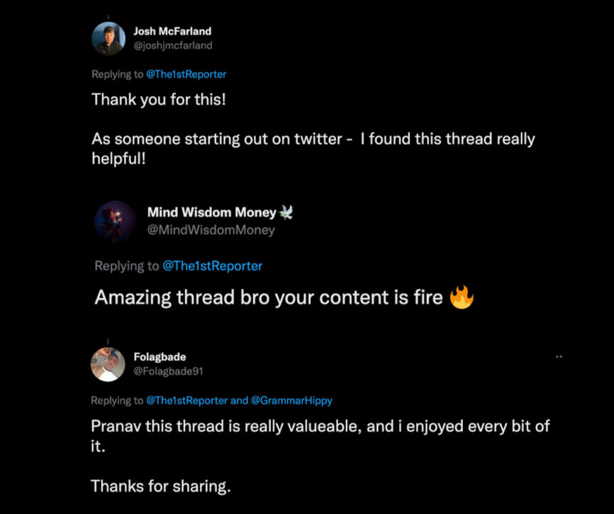 I’ve written for some of the biggest names on the platform, worked with the number one ghostwriting agency on Twitter and published almost 70 threads in 14 months.Here are some of my results and what people are saying: